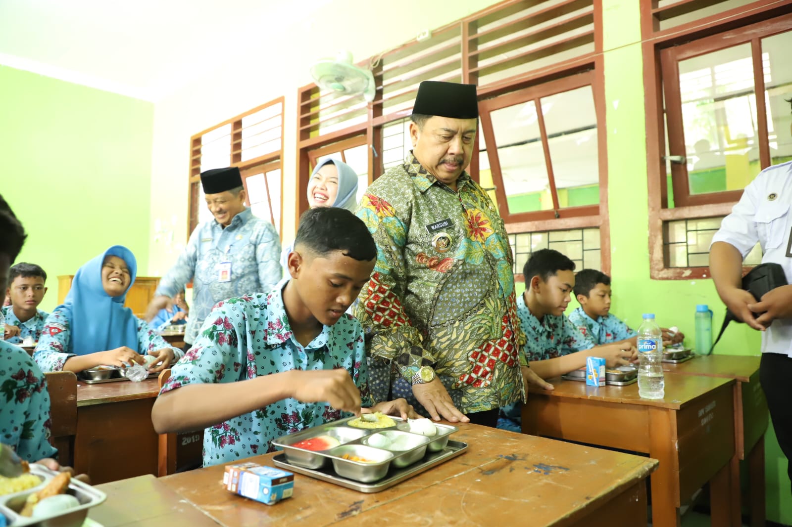 Bupati Warsubi menekankan pentingnya kualitas dalam kunjungan tersebut. Ia tidak hanya memastikan makanan utama layak, tetapi juga secara spesifik memeriksa susu yang diberikan kepada siswa, memastikan produk aman dan memiliki masa kedaluwarsa hingga tahun 2026.