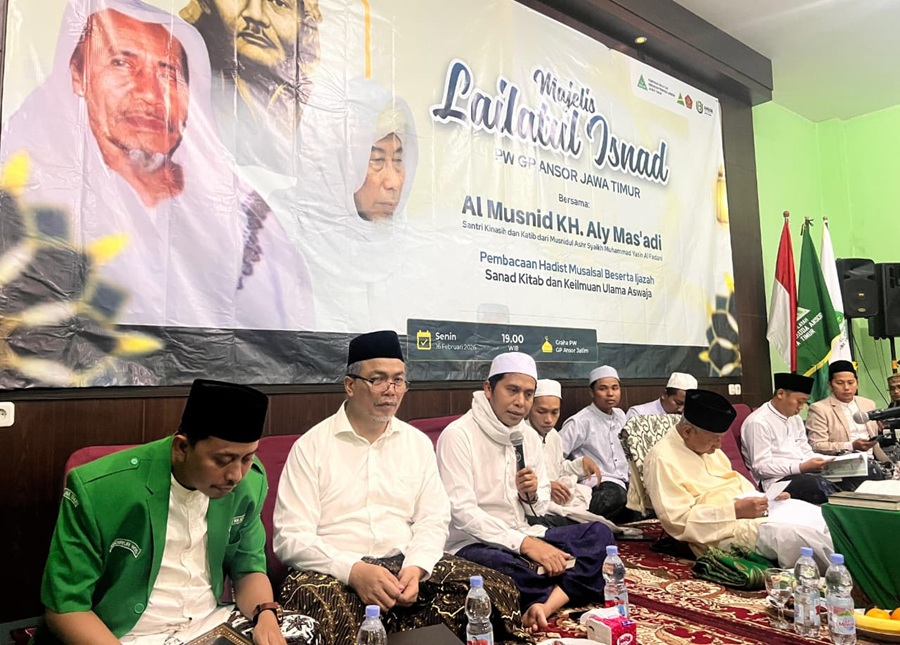 SURABAYA — GP Ansor Jawa Timur menggelar Majelis Lailatul Isnād untuk melestarikan tradisi keilmuan para ulama, sekaligus melawan derasnya arus informasi digital. Kegiatan yang berlangsung di Graha Ansor Jawa Timur, pada Senin (16/2/2026) malam ini juga bagian dari strategi memperkokoh pondasi intelektual dan spiritual kader berbasis sanad.