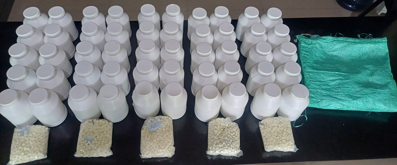 Bowo melanjutkan, saat dilakukan penggeledahan di rumah tersangka AK, pihaknya menemukan “harta karun” haram. Sebuah karung plastik berwarna hijau ditemukan tersembunyi di dalam rumah. Saat disobek, petugas dibuat terperangah melihat isinya: 50 botol plastik putih yang berderet rapi. “Setelah dihitung, setiap botol berisi 1.000 butir pil dobel L. Total 50.000 butir pil koplo berhasil diamankan,” tandasnya.
