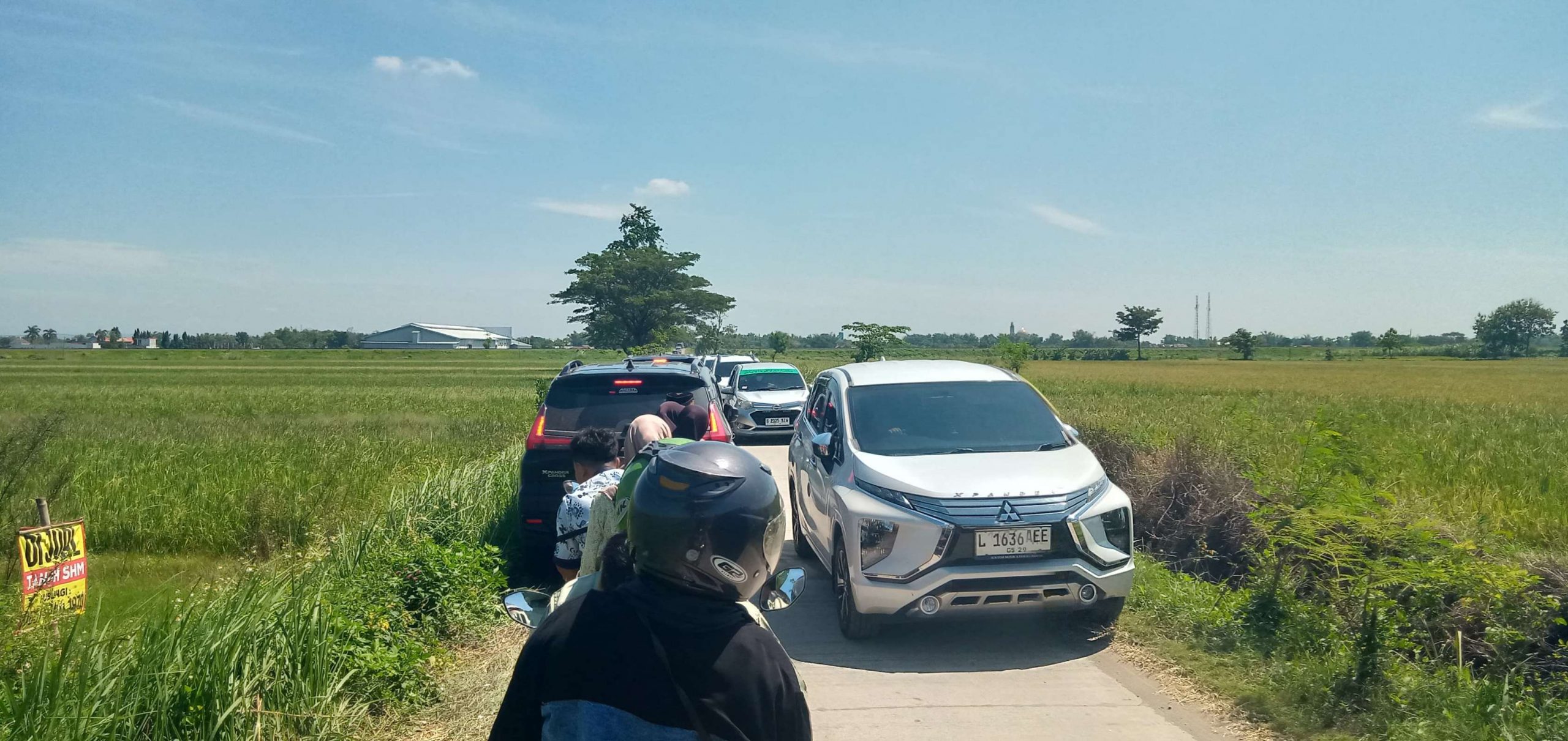 Pantauan di lokasi pada pukul 12.00 WIB menunjukkan ratusan mobil pribadi terjebak di jalan rabat beton selebar 6 meter yang tidak mampu menampung arus dari dua arah. Kendaraan roda empat mendominasi “jalan tikus” ini sebagai upaya menghindari antrean di jalur utama, namun justru memicu penumpukan di wilayah Desa Mojokambang.