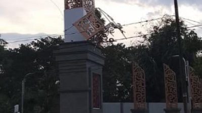JOMBANG : Sebuah tugu yang baru selesai dibangun sebagai landmark Kabupaten Jombang, Jawa Timur, dengan…